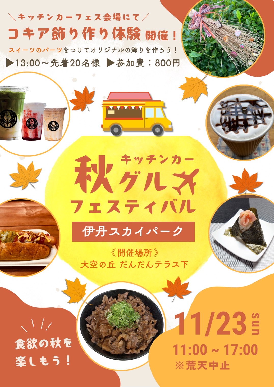 カルビ丼やおむすび・わらび餅ドリンクなどのキッチンカーが、スカイパークに大集合します🚚