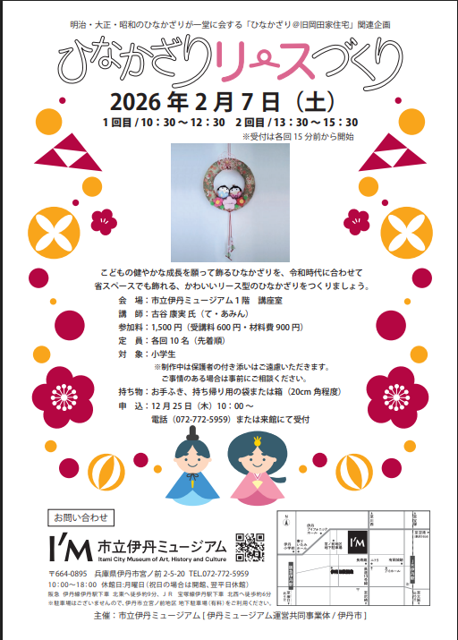 こどもの健やかな成長を願って飾るひなかざりを、令和時代に合わせて省スペースでも飾れる、かわいいリース型のひなかざりをつくりましょう。