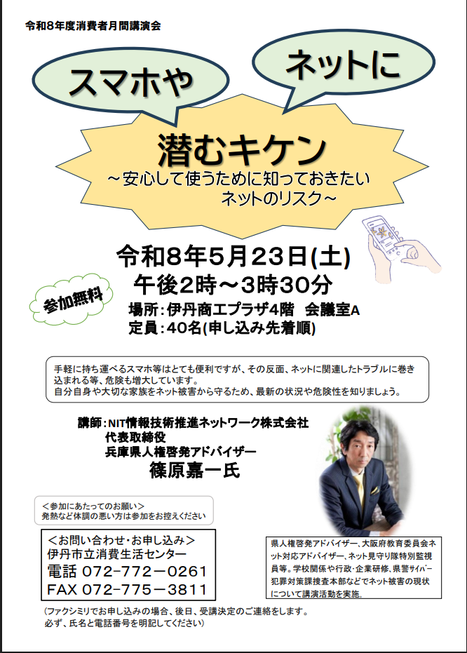 自分自身や大切な家族をネットのトラブル等から守るため、ぜひご参加ください。