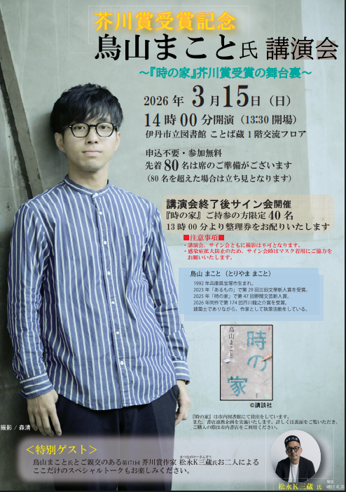 芥川賞受賞記念 鳥山まこと氏講演会~『時の家』芥川賞受賞の舞台裏~