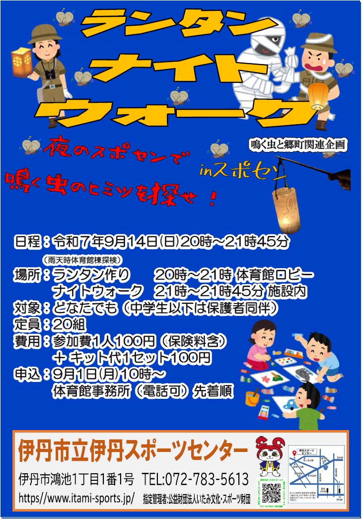 自作のランタンの灯りをたよりに、閉館後のスポーツセンター内、普段はできない夜の散歩を楽しみませんか?遠くから聞こえる虫の音に耳を傾けながらセンター内を探検しよう!