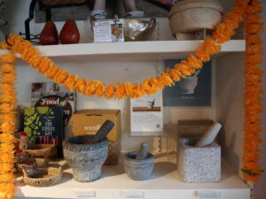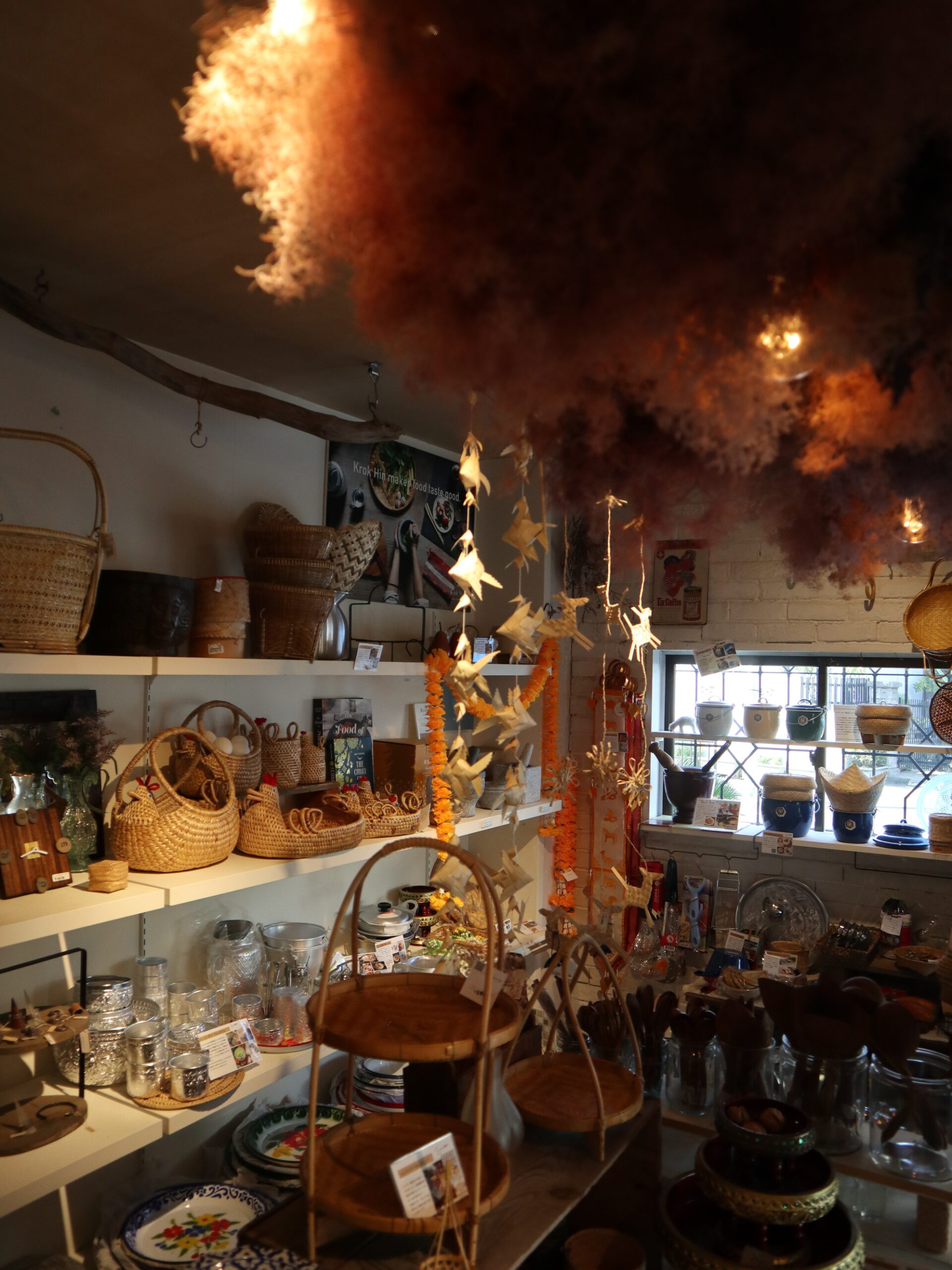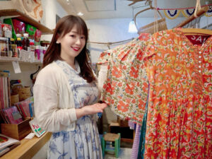 次に、私達はアジア雑貨のお店、roughAsiaさんを取材させて頂きました。姉妹で経営されていて、元々お姉様がタイに在住されていたことがあり、それがお店を始めるきっかけになったそうです。お洒落な店内は写真撮影が可能で、食器や服、鞄など色とりどりの商品がとても可愛らしく、気づいたら沢山写真を撮っていました。
