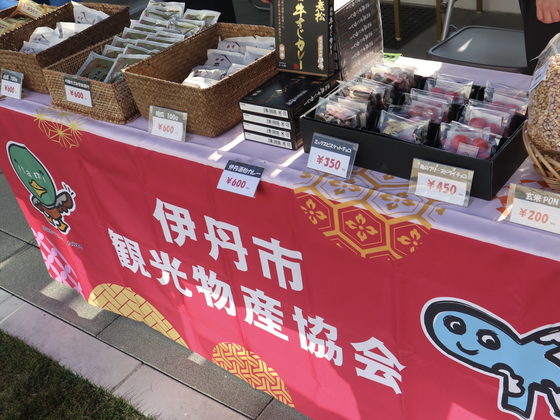 伊丹市観光物産協会のブースでは伊丹ならではの特産品や人気商品がずらりと並び、多くの来場者で賑わいました。ブースには、伊丹の酒蔵が手がける日本酒をはじめ、純米吟醸や小瓶サイズで気軽に楽しめる商品が並びました。飲み比べやお土産にもぴったりで、日本酒好きの方の足を止めていました。また、伊丹市のマスコットキャラクター「たみまる」のグッズも人気で、たみまるの缶バッジや、思わず抱きしめたくなる大きなぬいぐるみは、子どもから大人まで幅広い世代に好評でした。さらに、酒粕を使った加工品やお菓子、フリーズドライのいちごチョコ、玄米スナックなど、伊丹市の素材を活かした食品も充実していました。どれも手に取りやすい価格で、ちょっとしたおやつやお土産として選ばれていました。伊丹の歴史や食の魅力を一度に楽しめる伊丹市観光物産協会のブースは、訪れた人にとって、伊丹を身近に感じられたのではないでしょうか。